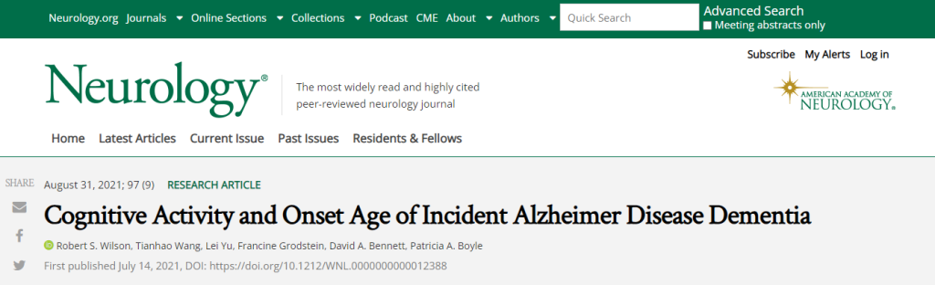 به عنوان نتیجهگیری کلی سبک زندگی فعال شناختی در سنین بالا ممکن است شروع زوال عقل در AD را تا 5 سال به تاخیر بیندازد.